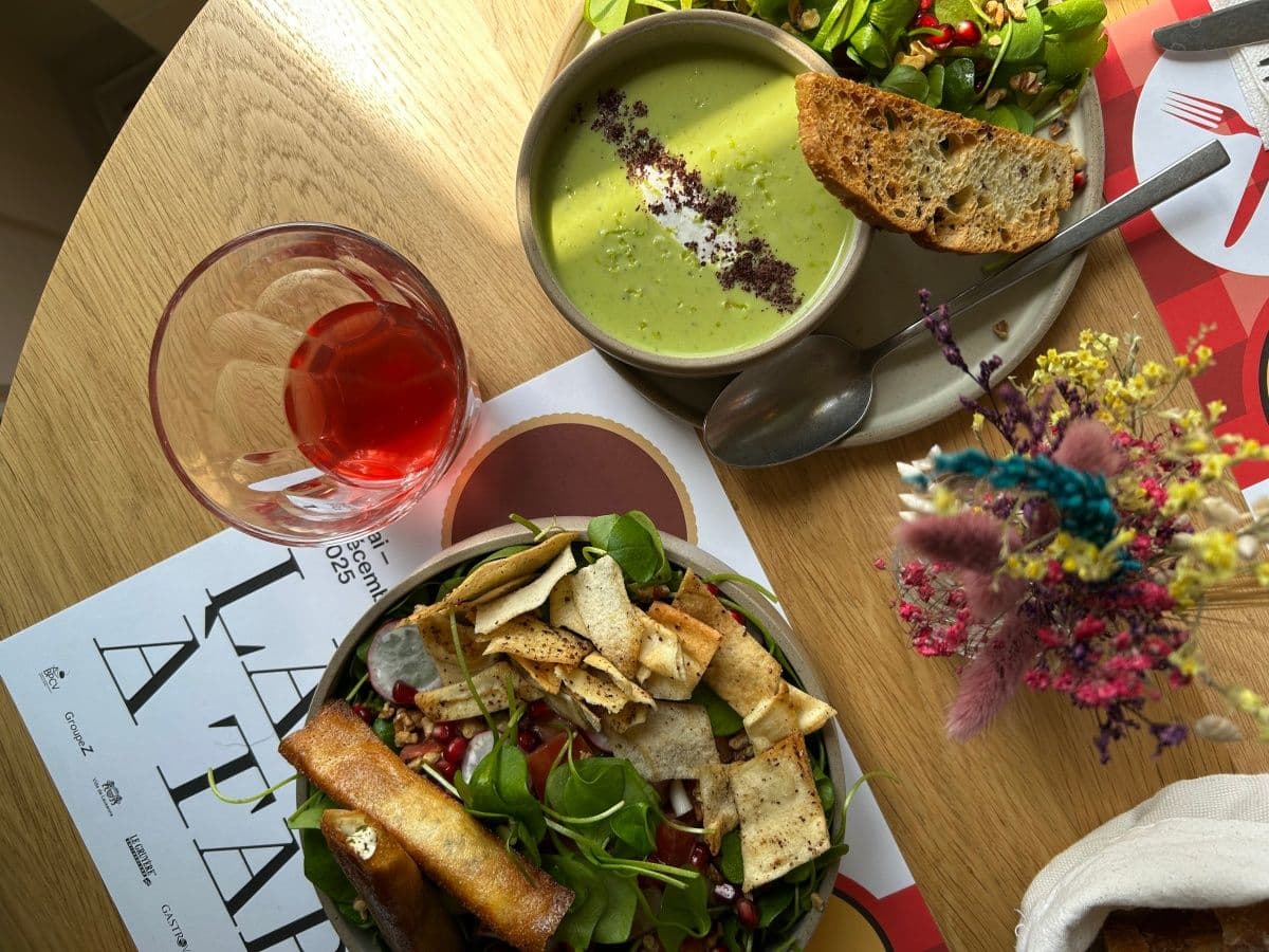 There are few places in Lausanne as effortlessly enchanting as Pyxis Café. Tucked just beside the cathedral, its two dining rooms offer a tale of two views: one gazing up at gothic spires and the cobbled charm of La Cité, the other stretching out toward rooftops, lake, and Alps beyond.