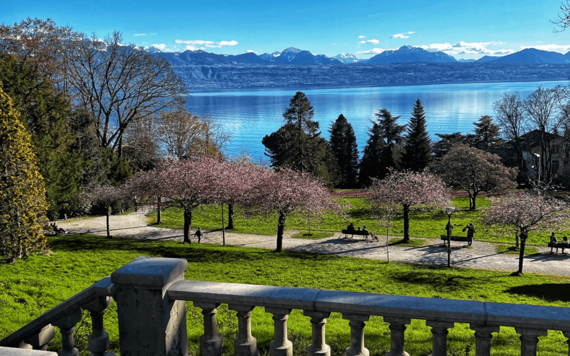 A favorite location for photographers and influencers–and for good reason. This little promenade next to the Olympic Museum and just in front of the old Musée Èlysée is lined with cherry blossoms and has views of the lake and mountains as well. If you can sneak out for a weekday walk, it’s recommended, as this location becomes quite crowded during the weekend.