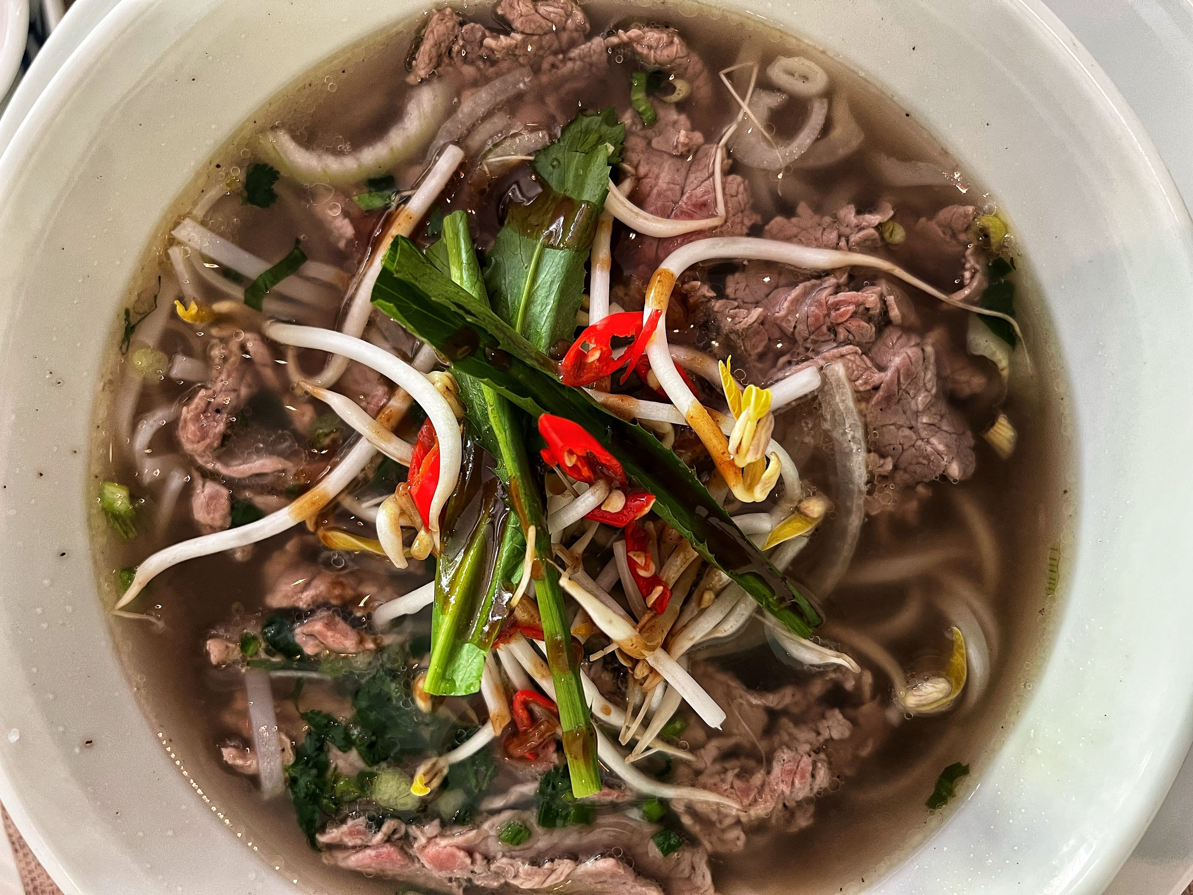 Phở, pronounced "fuh," is a traditional Vietnamese noodle soup that has captured the hearts and palates of food enthusiasts around the world. Its origins can be traced back to the early 20th century, with influences from both Chinese and French culinary traditions. At its core, Phở is a flavorful broth, usually made with beef or chicken, infused with aromatic spices such as star anise, cloves, and cinnamon. The broth is poured over rice noodles and topped with a variety of fresh herbs, bean sprouts, lime, and chili, allowing for a customizable and vibrant dining experience. Basically, it's a hug in bowl.