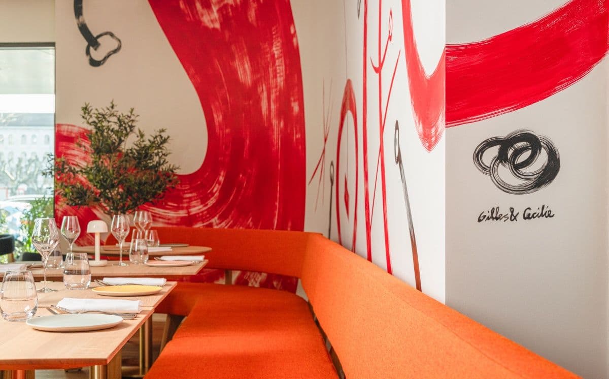 Alex Meitlis, head architect of all of the Ottolenghi spaces, is behind the design. The space is bathed in natural light from large windows overlooking the Rhône River. A glass wall provides a seamless visual connection to the heart of the hotel and is adorned with contemporary gold, bronze and natural wood sculptural accents, inspired by the creativity of the iconic Ottolenghi design creator, the late Ivo Bisignano. In tribute to his legacy, the restaurant showcases murals created by Giles & Cecilie Studio, further enriching the visual experience. Meitlis explains: